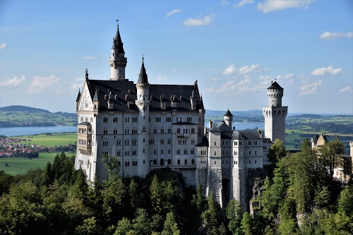 Altri tag (senza riscontro): pini, piante, neogotico, tetti, abbaini, fiabe, architettura, torre, archi, colline, banderuola, statue, francese, statua, comignoli, valle, foresta.