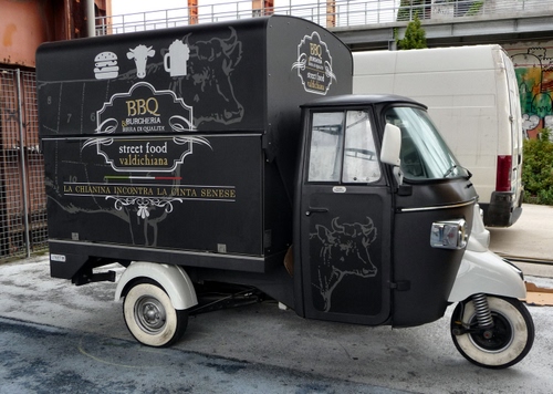 ho trovato questa APE reclamizzante cibo da strada toscano durante la sagra del lo street food tenutasi a Torino