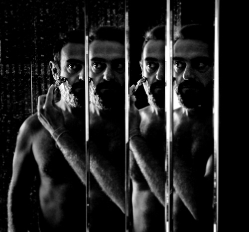questo specchio ce l'hai in casa? lui passa al mattino a farsi la barba? |