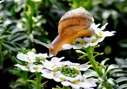 Chiocciola Zigrinata su Lobularia PW ‘Snow Princess’ Curiosità La Chiocciola Zigrinata ha una Velocità di 0,047Km orari