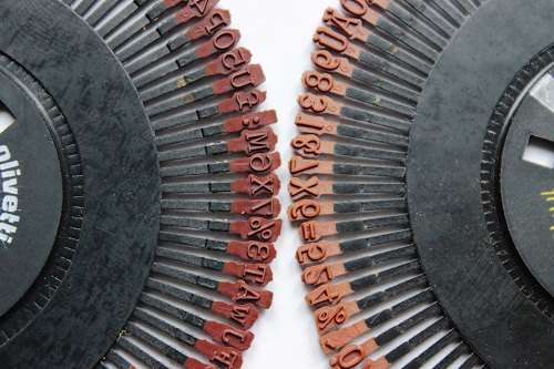 "Margherite" per scrittura elettronica Olivetti, a sinistra carattere "elite" p.12 tastiera italiana, a destra carattere "letterG" p.10 tastiera tedesca.