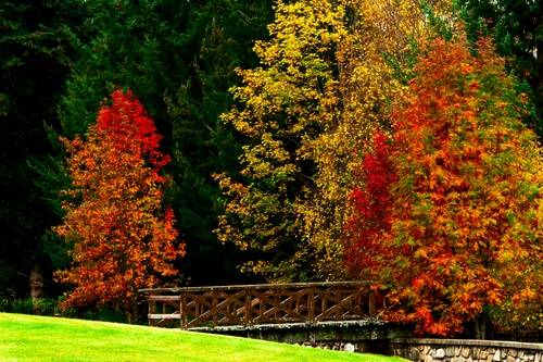 Tag: verde, ponte, autunno, alberi, rosso, foglie, prato, giallo, parco, colori, erba, legno, piante.