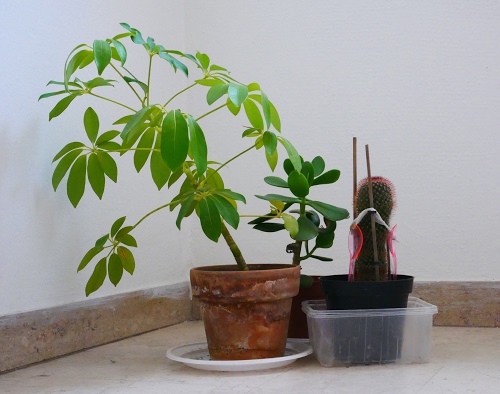 Alcune mie piante nei loro spledidi vasi di terracotta e plastica.