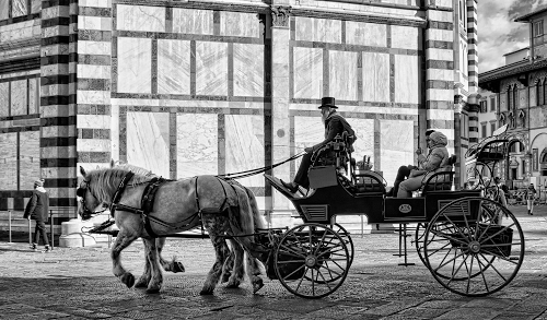 Altri tag (senza riscontro): barba, traino, animali, casa, carrozzella, ruota, antica, rettangoli, riquadri, strada, duomo, cilindro, cielo, marmo, quattro, finestre, ombre, geometrie, coda, battistero, vetturino, passeggero, predellino, caleche, seduti, mura, bombetta, due, briglia, briglie, calesse.