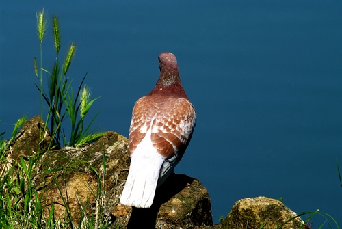 Tag: uccello, erba, spighe, verde, azzurro, roccia, colombo, piume, piccione, rocce, blu.