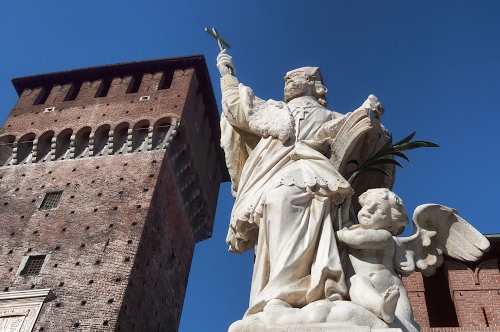 nel piazzale del castello Sforzesco