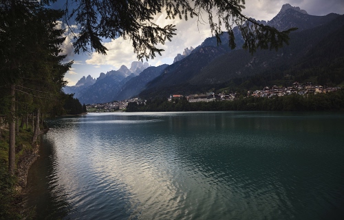 Auronzo di Cadore e sullo sfondo le tre cime di Lavaredo