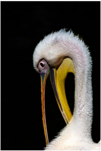 Tag: becco, bianco, uccello, giallo, nero, collo, piume, pellicano.
