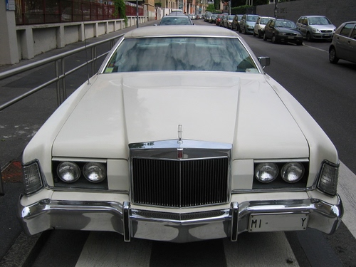Una Lincoln Continental Mark IV (anni 70) parcheggiata in una via di Milano.