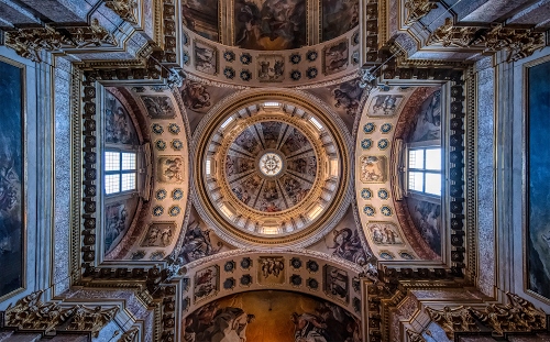 Tag: chiesa, archi, cupola, affreschi, finestre, cerchio, interno, simmetria, volta, soffitto, cerchi, decorazioni, arcate.