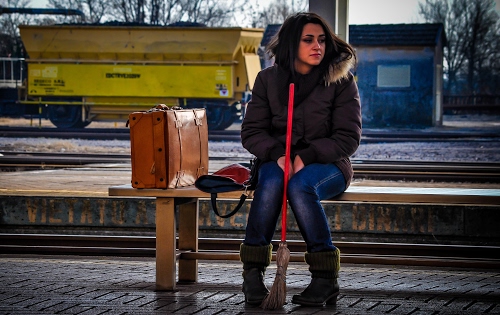 ...una befana giovane e bella che per viaggiare usa il treno al posto della scopa...!? ...più originale di così.... |