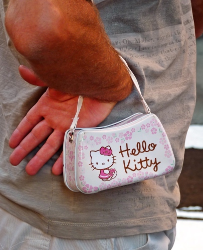 bel contrasto quel braccione peloso con la borsettina da bambina, originale. |