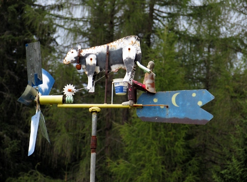 Grazie, in effetti è molto simpatica. Con il vento l'omino si muove e sembra che munga la mucca.