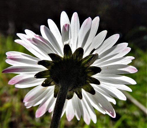 Ho fotografato una margherita con un angolo di ripresa particolare, dal basso e controluce, cercando un risultato meno banale