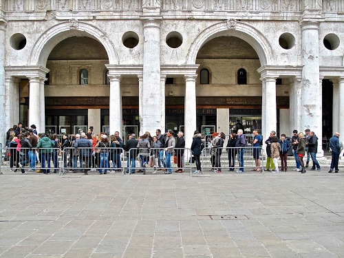 Tag: transenne, archi, colonne, persone, fila, coda, piazza, attesa, palazzo, gente, vetrine, strada, porticato, cerchi, fori.