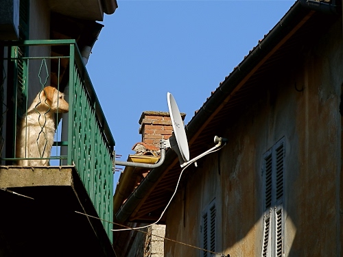 Altri tag (senza riscontro): animali, casa, camino, balconcino, terrazza, bianco, palazzo, strada, scorcio, quadrupede, sole, mura, filo, celeste, solitario, beige, vicolo, ringhiere, cavo, satellitare, ombra, inferriata.