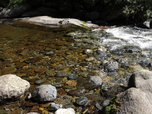 Il suono dell'acqua del torrente che scorre tra i sassi.