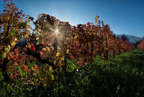 Altri tag (senza riscontro): rosso, tronchi, rosse, vite, vitigni, pali, uva, natura, filare, collina, tralci, celeste, vigneti, monti, raggio, gialle.