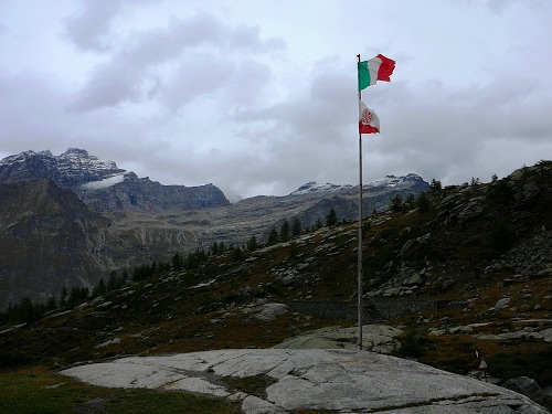 Ceresole Reale-Rifugio Jervis (2.250 metri), tricolore sfilacciato dal vento.