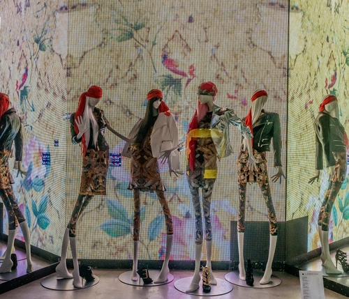 Tag: manichini, vetrina, vestiti, colori, scarpe, riflesso, riflessi, moda, specchi, rosso, verde, disegni, gambe, abiti, specchio, bandane, giallo, muri, esposizione.