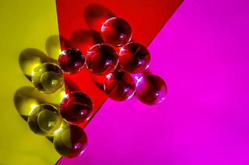 Tag: rosso, vetro, giallo, colori, viola, biglie, palline, ombre, triangoli, palle, riflessi, trasparente, fucsia, rosa, gialle.
