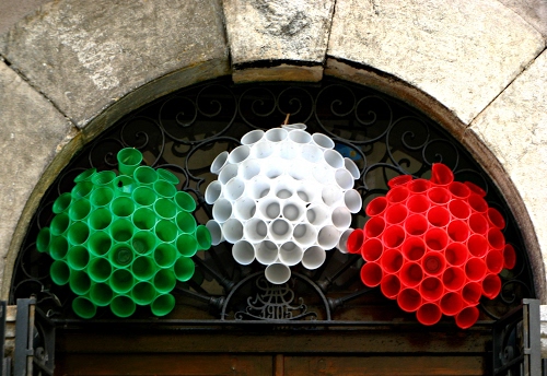 Tag: rosso, verde, bianco, arco, tricolore, bicchieri, porta, plastica, muro, ferro, portone.