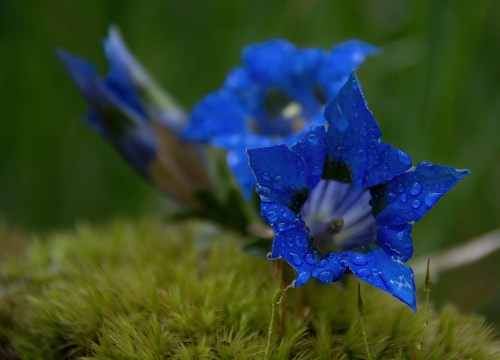 Che colore la genziana! Bella anche la base di muschio.