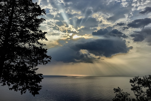 Tag: nuvole, cielo, raggi, alberi, mare, acqua, foglie, sole, albero, orizzonte, panorama, tramonto, azzurro, riflesso, celeste, paesaggio, rami.