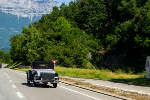 Tag: strada, auto, epoca, verde, alberi, bosco, montagna, automobile, strisce, piante.