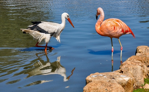 Foto dell'autore Diana Cocco candidata al contest fotografico contrasto su Dizy. Data inserimento: sabato 29 febbraio 2020. Titolo: Contrasto tra Cicogna e Flamingo