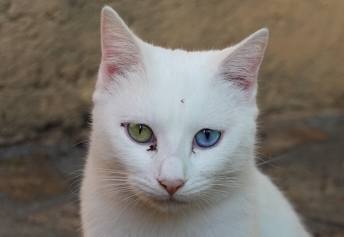 Gatto randagio reso molto particolare e affascinante per il diverso colore degli occhi