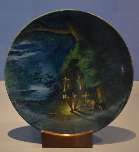 MIC Faenza - Piatto con "Il Tartufaio" - Maiolica di fine secolo XIX.