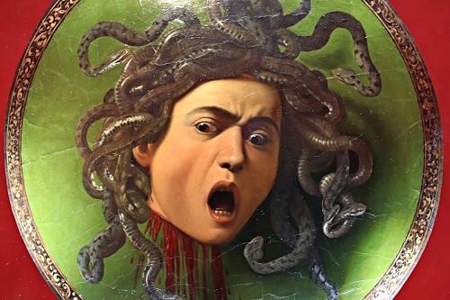 Dominique, candidando questa foto sapevo benissimo che l'oggetto ripreso non era un piatto ma uno scudo (aspetto questo che mi sembra essere dissimulato egregiamente) ed ero conscio che solo chi conosceva l'opera del Caravaggio esposta nella Galleria degli Uffizi di Firenze poteva notare questo dettaglio da te evidenziato. Peraltro come immagine originale (scopo della sua candidatura) penso che fosse stata ideale perché nessuna altra immagine poteva contendere con la sua bellezza e perché appunto non era un piatto! |