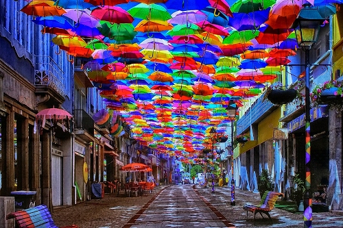 MV03041951 - 04/06/2020, 09:04 la foto riprende la via degli ombrelli di Agueda in Portogallo |