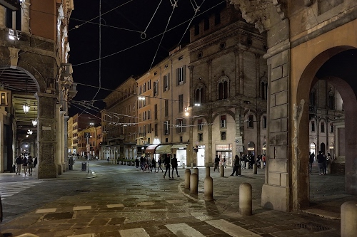 Altri tag (senza riscontro): fittoni, incroci, dissuasori, buio, gente, palazzi, galleria, cielo, lampioni, sera, negozi, cavi, tramvia, paracarri, incontri, portico, passeggio, centro, porticati, insegne, pedonale, portone, arco, borgo, bologna, incrocio.