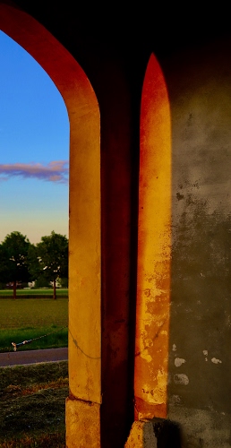 HO REALIZZATO QUESTA IMMAGINE APPENA DOPO IL LOCKDOWN, AL TRAMONTO. E' UN CASOLARE ABBANDONATO, TIPICO DI CAMPAGNA EMILIANA. SOTTO AL PORTICATO IL SOLE FILTRAVA ATTRAVERSO LE ARCATE CREANDO GIOCHI DI LUCE E RELATIVI BORDI.