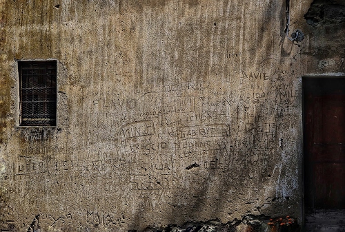 Tag: grata, muro, finestra, scritte, porta, nomi, rete, ferro, incisioni, graffiti, lettere, frasi, parete.