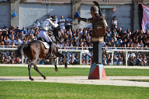 Certo Maura, la differenza è che a Foligno infilano anelli di piccolo diamentro mentre ad Ascoli devono colpire con la lancia il bersaglio posto sul braccio sinistro della statua. Grazie per l'apprezzamento alla foto!! ![]() |