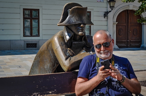 Ho lo stesso dubbio, per un selfie è molto vicino a se e alla statua, per fare la foto a lui + la statua dovrebbe allungare il braccio. |