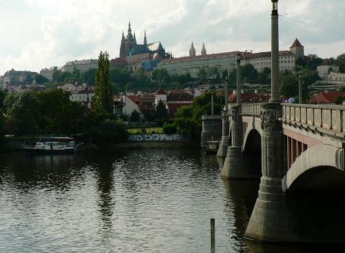 Il Castello di Praga dal Ponte Manesuv Most sul fiume Moldava.