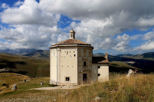 L'oratorio rinascimentale di Santa Maria della Pietà, nei pressi della Rocca di Calascio, a 1460 m. di altitudine nel parco del Gran Sasso
