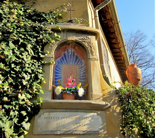 Altri tag (senza riscontro): vado, rampicanti, grondaglia, sacra, pianta, tetto, albero, bianco, dipinto, lampadina, lampada, madonna, crocifisso, cielo, finestra, blu, fogliame, arco, fiore, votive, votiva, ombra, nicchia, icona, edicole.