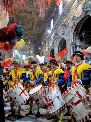 Altri tag (senza riscontro): cappello, copricapi, storia, verde, musicisti, aste, suonatori, celebrazione, comparse, lancia, corteo, soffitto, banda, commemorazione, figurante, abito, croci, bacchette, corridoio, medioevo, firenze, edificio, persone.