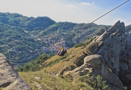 Scherzi? Mi sono divertito a guardare quelli che lo facevano. Più che altro, comunque, mi spaventava la salita da fare per arrivare alla stazione di partenza di Castelmezzano (è vero, ma è soprattutto una scusa...) |