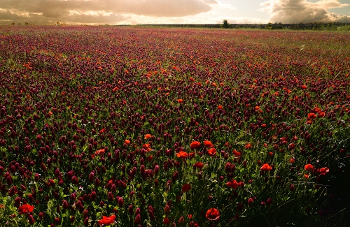 Foto dell'autore Diana Cocco candidata al contest fotografico pianura su Dizy. Data inserimento: mercoledì 21 luglio 2021. Titolo: Trifolium Incarnatum nella pianura murgiana
