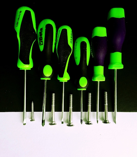 Mi piace tantissimo l'idea! Lo sfondo bicolore, i cacciaviti alternati alle viti. Da copiare proprio ![]() |