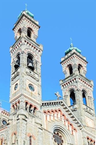 Altri tag (senza riscontro): messa, balaustre, chiese, colonne, lesene, dettaglio, architettura, torre, orario, nuvole, celeste, religione, frontone, nicchie, colonnine.