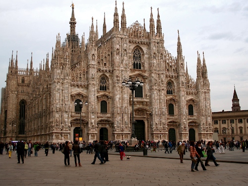 Piazza Duomo con il simbolo della città di Milano: la Cattedrale Metropolitana della Natività della Beata Vergine Maria (Duomo di Milano).