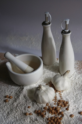 Tag: aglio, farina, bianco, mortaio, bottiglie, oliera, nocciole, pestello, vaso.
