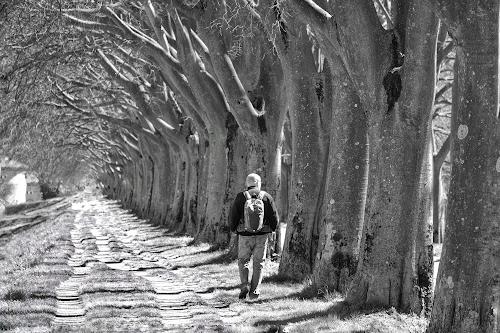Tag: alberi, bianconero, rami, zaino, viale, ombre, tronchi, uomo, strada, persona, erba, camminare, prospettiva, cammina, filare, passeggiare, spogli, sentiero, camminatore.